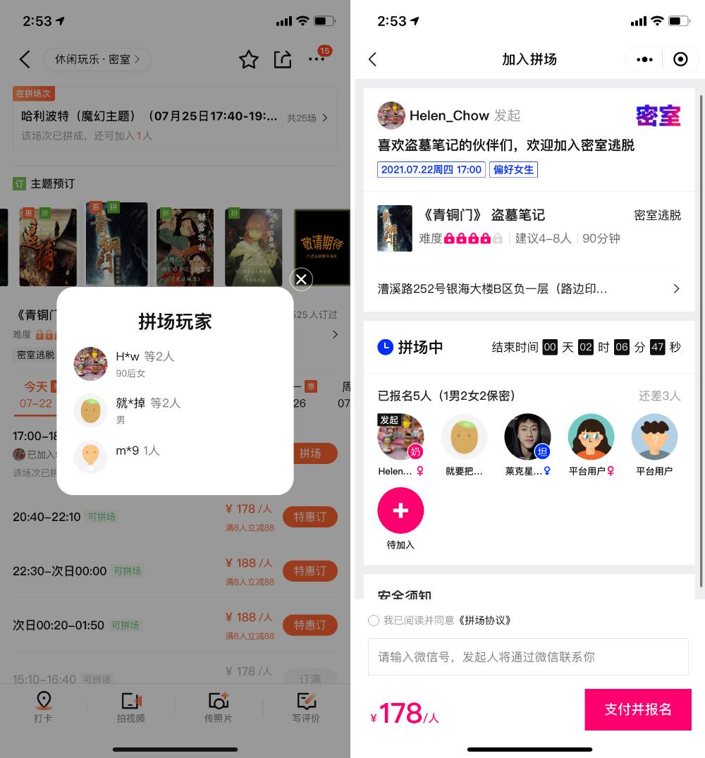 这是对美团本身就有的剧本杀、密室逃脱、运动场馆预定服务的延伸,美团把所有需求整合到了一起,让年轻人在这里发布在美团入驻商家的拼场需求,能够一起凑足密室、剧本杀这样线下体验娱乐的基本人数。